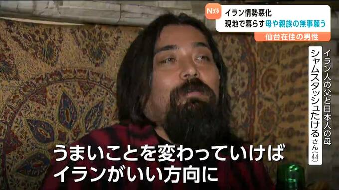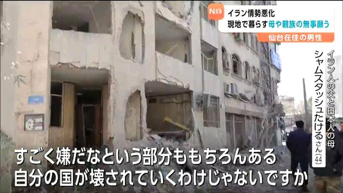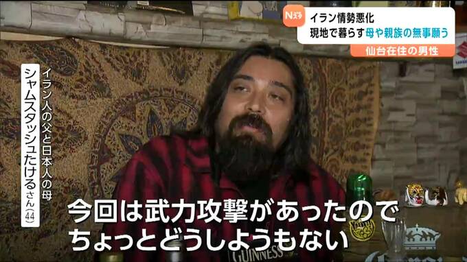 イラン人と日本人を両親に持つ仙台の男性は、現在もイランで暮らす母親や親族の無事を願っています。