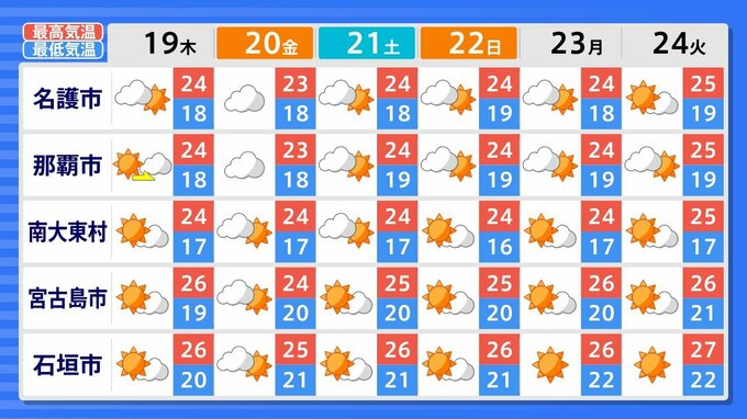 沖縄は晴れか曇りが続く予想です。