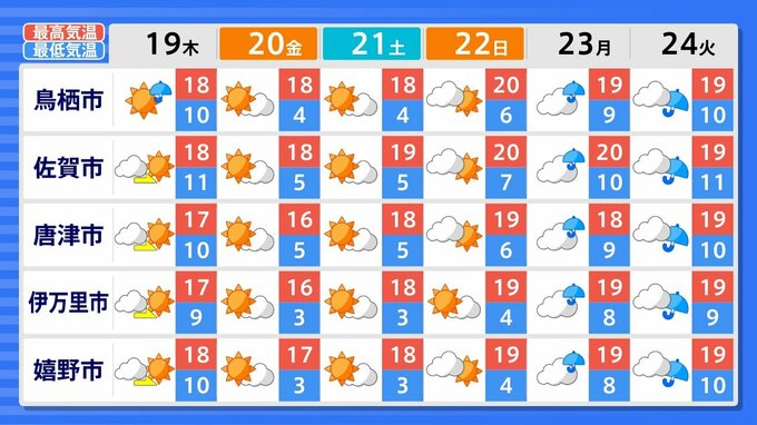 福岡、佐賀、長崎、大分は23日、24日に雨マークがついている場所が多くなっています。