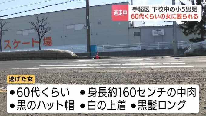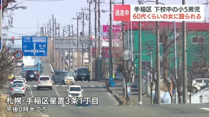 16日、札幌市手稲区の路上で、下校中の小学5年生の男子児童が60代くらいの見知らぬ女に腹を殴られました。女は、その場から逃走していて警察が行方を捜査しています。