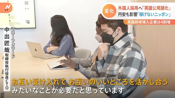 技術に関する記事について英語で会話しているのは、金融系IT企業「マネーフォワード」の社員です。エンジニアの3割ほどを外国人が占める、こちらの企業。2024年度にエンジニア部門での英語公用語化を検討しています。