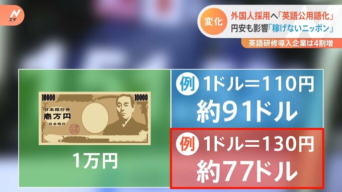 今年、一時1ドル=151円台をつけるなど、32年ぶりの水準まで進んだ円安。その影響もあって、日本企業が外国人を採用するのが難しくなっています。そうした中で外国人に日本に来てもらおうと、企業が英語を「公用語化」する動きが出てきています。