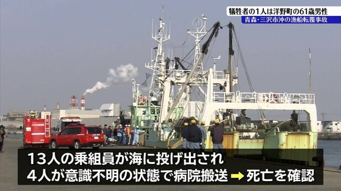 13人の乗組員が海に投げ出され、4人が意識不明の状態で病院に運ばれ、いずれも死亡が確認されました。