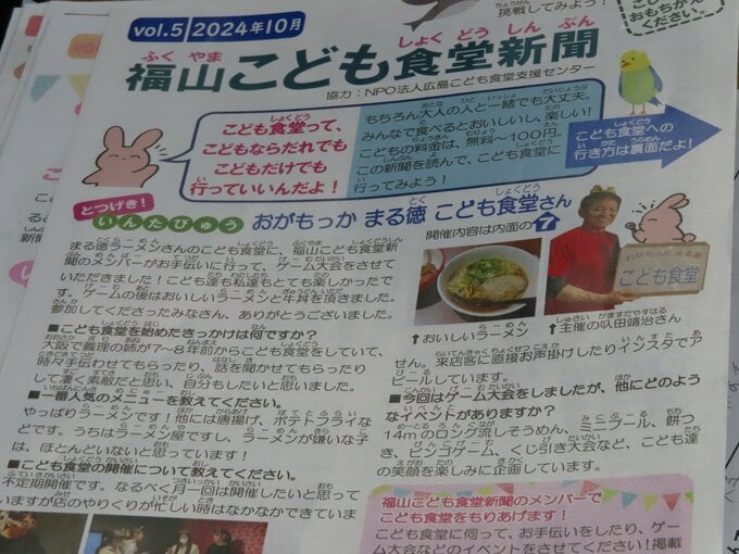 秋山さんらは市内の子ども食堂を取材して、運営する人へのインタビューなどを掲載。市内の子ども食堂の紹介では、所在地を単なる距離で表すのではなく「小学校から何歩」といったわかりやすい表現を心がけている。製作費は企業の協賛金で賄っている。さまざまな企業を訪問して直接協力を呼びかけることによって協賛金が増え、発行する度に部数も増やすことができた。