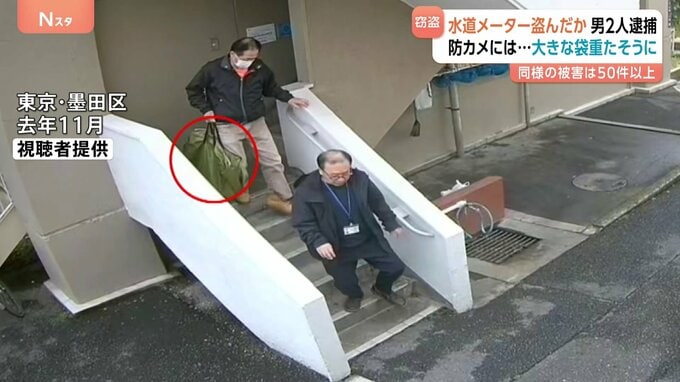 東京・墨田区の都営アパートから水道メーターを盗んだとして、60代の男2人が逮捕されました。防犯カメラには犯行直後、2人が大きな袋を運ぶ様子が写っていました。都営アパートの防犯カメラ映像。周囲を気にしなが…