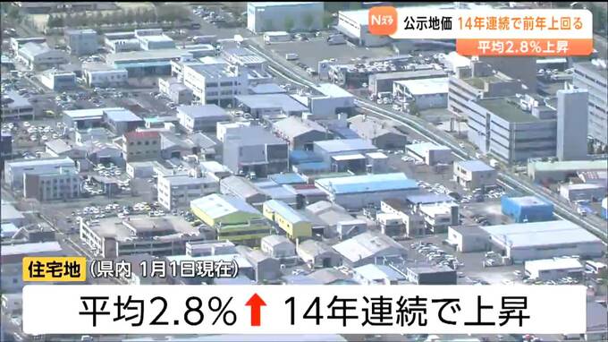 それによりますと、2026年1月1日現在、県内の住宅地は平均で2.8%上がり、14年連続で上昇しました。
