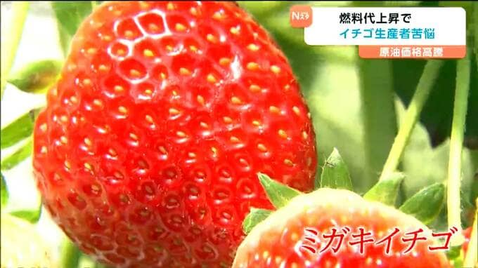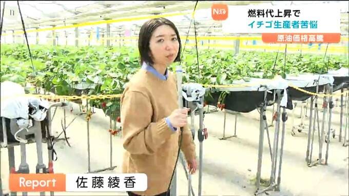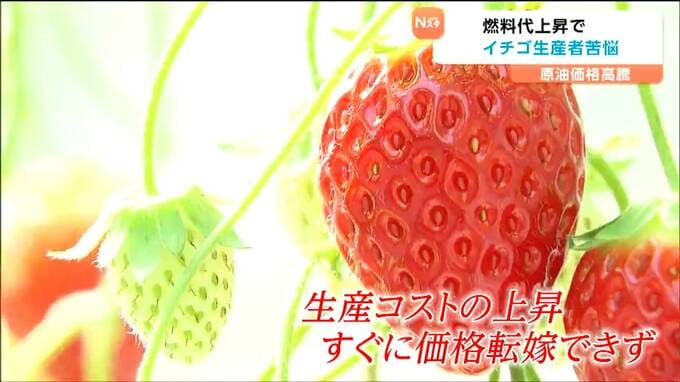 「今が旬のいちごですが、いちごを栽培するために必要なビニールハウスの暖房などにも原油価格の高騰が影響しているということです」