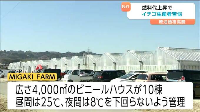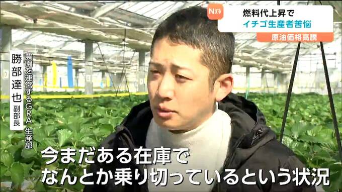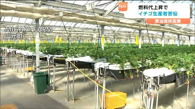 イラン情勢の悪化による原油価格の高騰は、宮城県内にも大きな影響を及ぼしています。今が旬のイチゴ栽培は、ビニールハウスの暖房に使う燃料代などが値上がりしていて、生産者は頭を悩ませています。