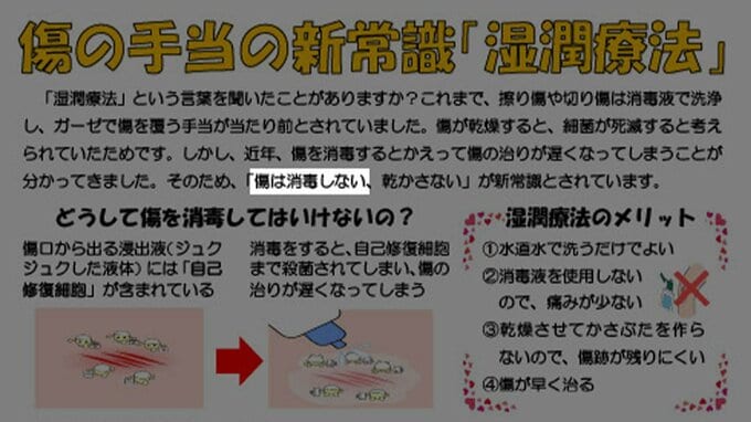 え、傷が治りにくくなる・・・? 傷の処置で欠かせないと思っていた「消毒液」が、実は傷の治りを遅くしているってこと?だとすれば一大事ではないか。