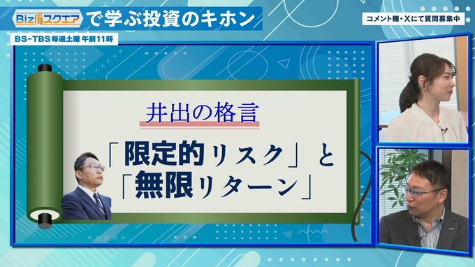 最終回の投資の格言は、井出さんの「限定的リスクと無限リターン」