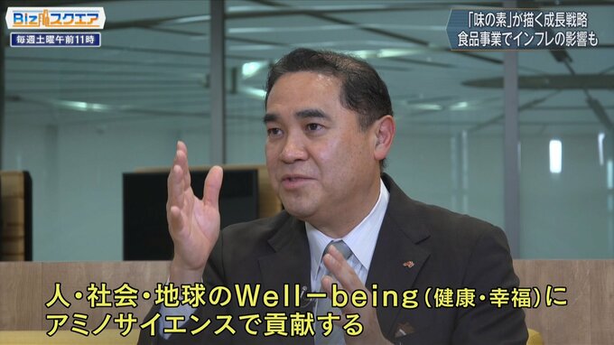 「食だけではなくて我々パーパス(志)は、人・社会・地球のWell-being(健康・幸福)にアミノサイエンスで貢献すること。時代時代のWell-beingに貢献するためのものを、我々のユニークネス(独自性)を使って提供していきたい」