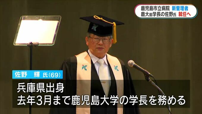 新しい病院事業管理者となる佐野氏は兵庫県出身の69歳。愛媛大学医学部助手や鹿児島大学医学部長などを経て、去年3月まで、鹿児島大学の学長を務めていました。