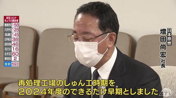 日本原燃は26日、青森県六ヶ所村に建設中の使用済み核燃料の再処理工場の完成時期を「2024年度上期のできるだけ早い時期」、6月ごろまでに延期することを県などに報告しました。日本原燃の増田尚宏社長は26日、県…