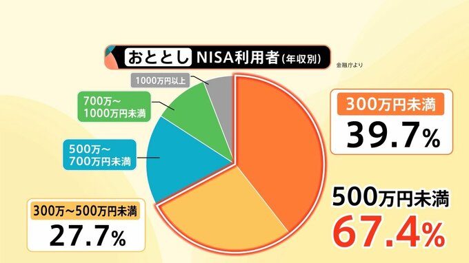 2024年のNISA利用者の年収別の内訳は以下で、500万円未満の年収の人が約7割を占めているということです。