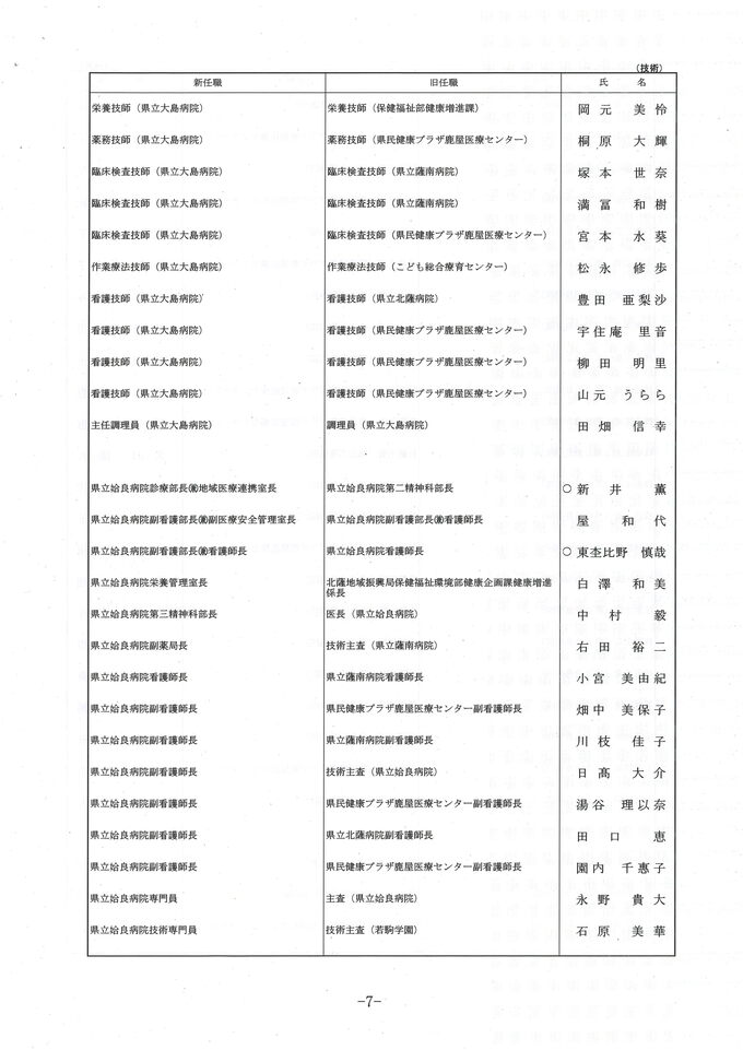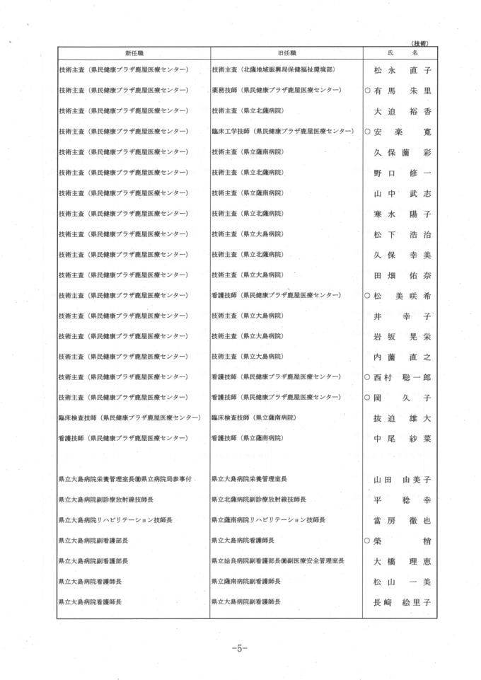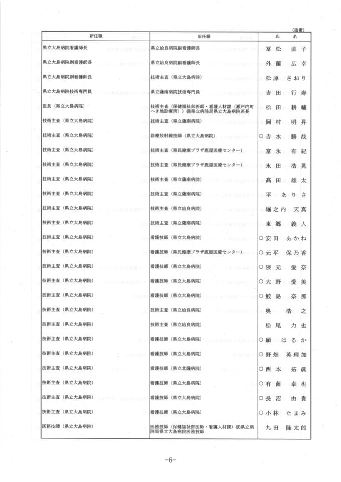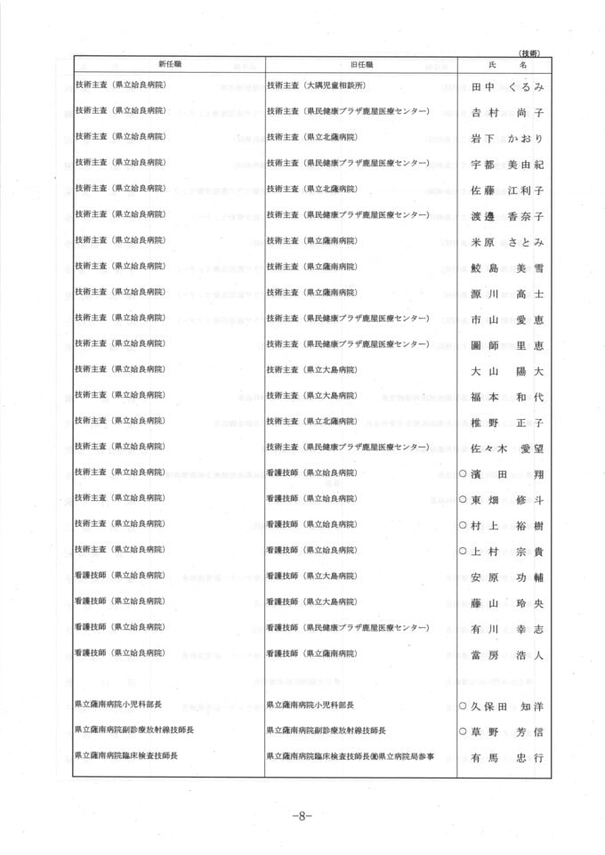 3. 【県立病院局の人事異動一覧】令和8年鹿児島県人事異動名簿2026