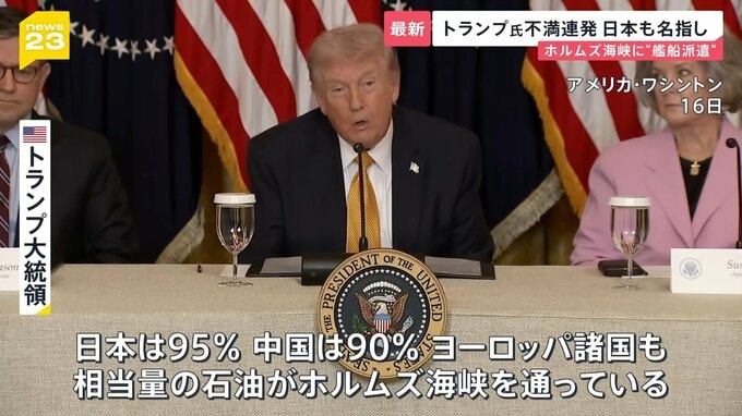 一方、トランプ大統領は、事実上封鎖となっているホルムズ海峡周辺で足止めされているタンカーなどを守るために、他の国に対して艦船を派遣するよう求めています。