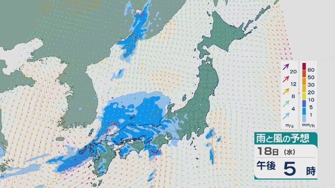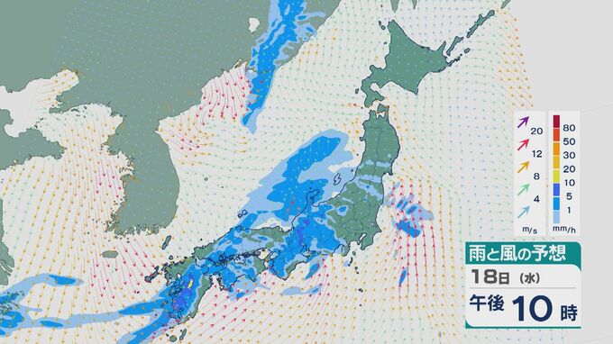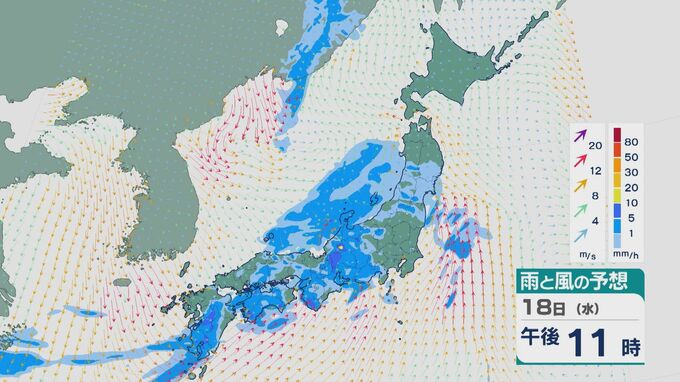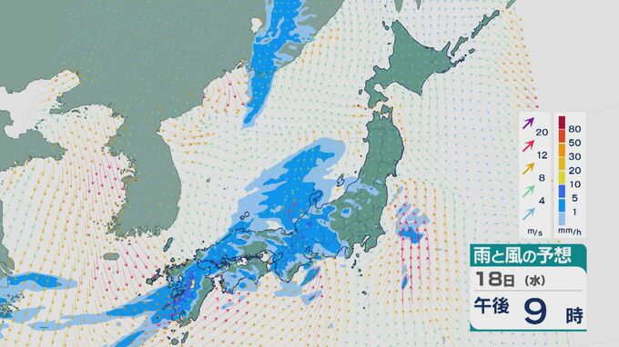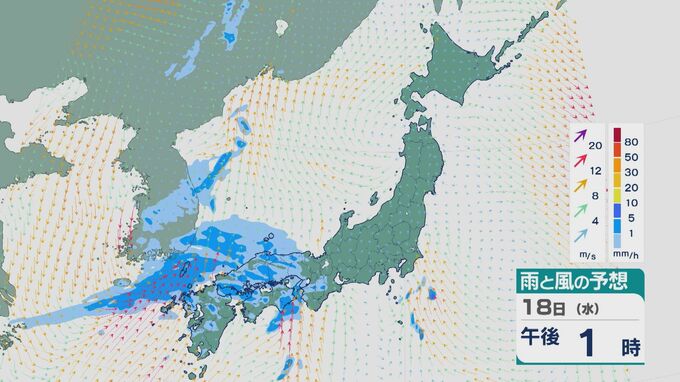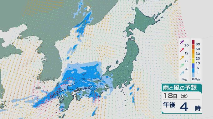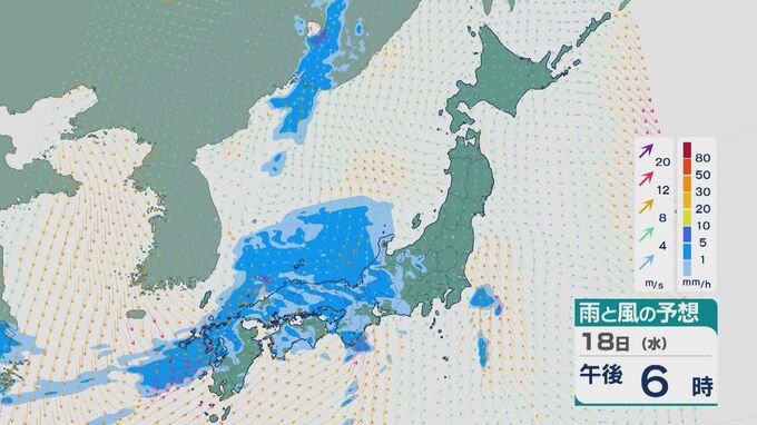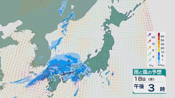 18日の昼過ぎ以降は、近畿や東海・北陸で雨が降る見込みです。太平洋側の沿岸部では南からの暖かく湿った空気が流れ込んで大気の状態が不安定になり、雨の降り方が強まりそうです。