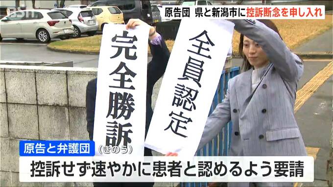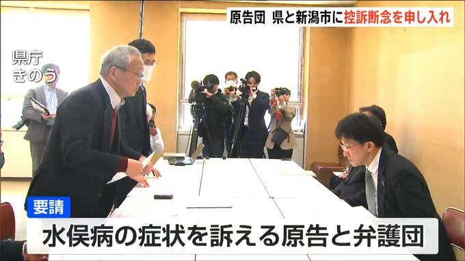 水俣病の患者認定をめぐる裁判で原告勝訴の判決が出たこと受け、原告と弁護団らが新潟県と新潟市に対し控訴しないように要請しました。
