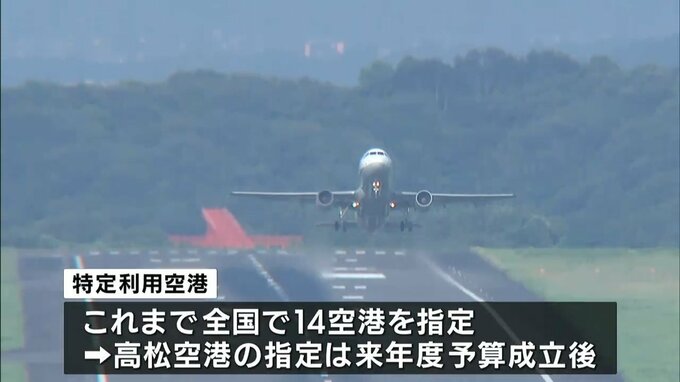 これまで全国では14の空港が指定を受けていて、高松空港の指定については来年度予算成立後の関係閣僚会議で正式決定されるということです。