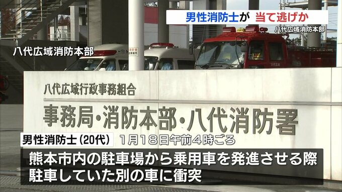 八代広域消防本部の20代の男性消防士が、車で当て逃げをしていたことが分かりました。八代広域消防本部によりますと、この男性消防士は、業務時間外だった1月18日午前4時ごろ、熊本市内の駐車場から乗用車を発進さ…