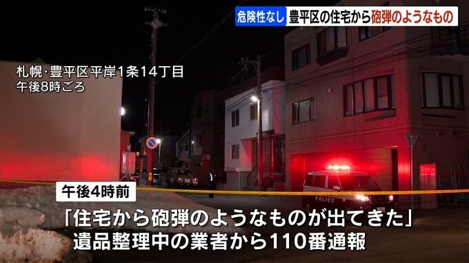 17日午後4時前、札幌市豊平区平岸1条14丁目の住宅で「砲弾のようなものが出てきた」と遺品整理をしていた業者から警察に通報がありました。