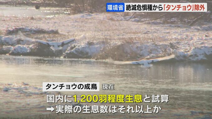 1991年に絶滅危惧種に指定され、保全活動によって個体数が回復、現在、大人のタンチョウは国内に1200羽程度生息していると試算され、実際の生息数はそれ以上とみられています。