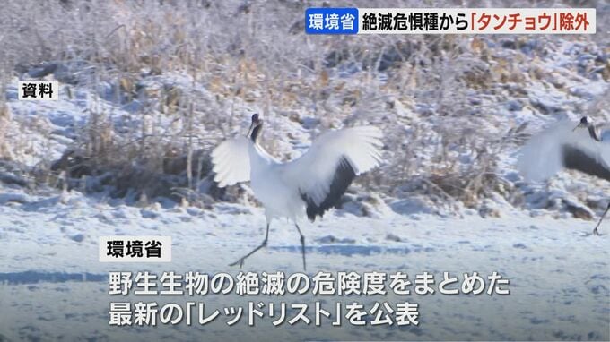 環境省は野生生物の絶滅の危険度をまとめた「レッドリスト」を見直し、国の特別天然記念物のタンチョウを絶滅危惧種から除外したと発表しました。