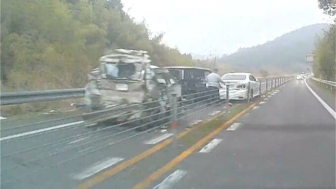 薩摩川内市の南九州自動車道の映像です。乗用車1台が大破しています。