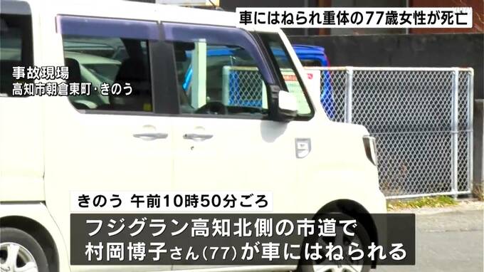 17日、高知市の市道で車にはねられ重体となっていた77代の女性が、18日朝、死亡しました。警察は、「過失運転傷害」の疑いで逮捕していた車の運転手の容疑を、「過失運転致死」に切り替えて捜査を進めています。