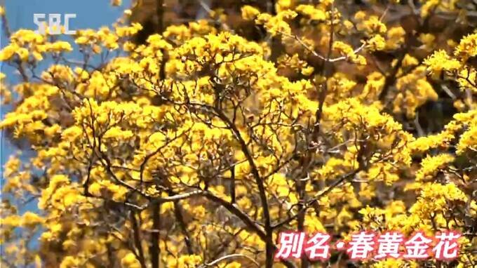 花が開くと木全体が黄金色に見えることから、別名・春黄金花(はるこがねばな)とも呼ばれ、今年も今月中旬に黄色い小さな花が咲き始めました。