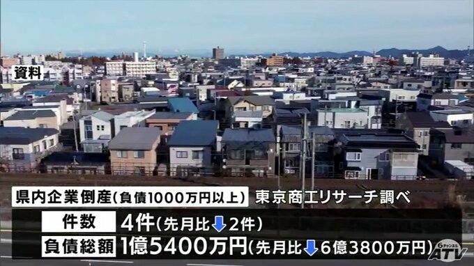 【青森県】2月の県内企業の倒産件数は4件 2025年後半から増加基調が続いていた倒産動向 2026年に入り小康状態続く 青森テレビ 2026年3月18日(水) 14:15 国内 【写真を見る】 ※「NEWS DIG」のアプリやサイト以外でご覧の方は、関連リンクから画像をご確認いただけます。