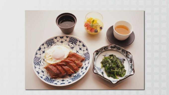 正念場で選んだきょうの「勝負めし」は、名古屋コーチンの目玉焼きを乗せた叉焼飯(チャーシューハン)やマンゴープリンのセットでした。