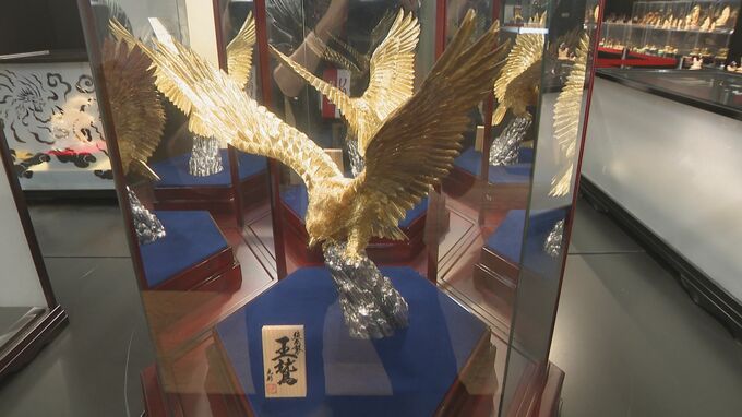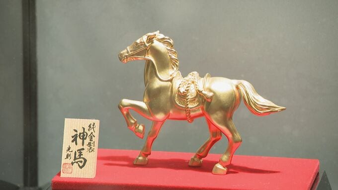 他にも、ことしの干支「午」にちなんだ置物など、約300点の金製品が並んでいました。いずれも、国内トップクラスの金工芸職人の方々が手がけた逸品です。
