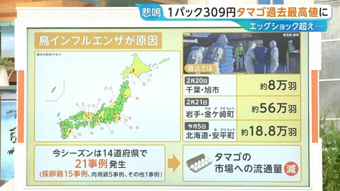 価格高騰の原因は「鳥インフルエンザ」です。