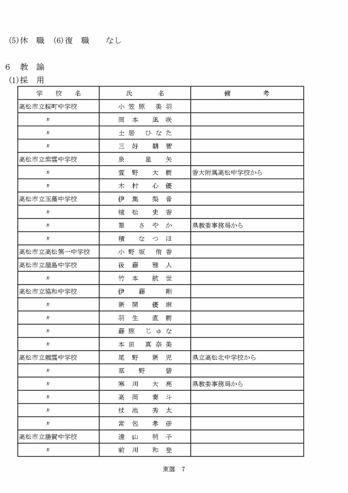 【2026年4月】香川県教職員人事異動「あの先生は、どこへ?」東部中学校(高松市・さぬき市・東かがわ市・木田郡・香川郡・小豆郡)【画像一覧掲載】 RSK山陽放送 2026年3月19日(木) 15:08 国内 教諭 《画像》 【西部小学校】【東部小学校】【西部中学校】【東部中学校】【県立教員・事務職員】