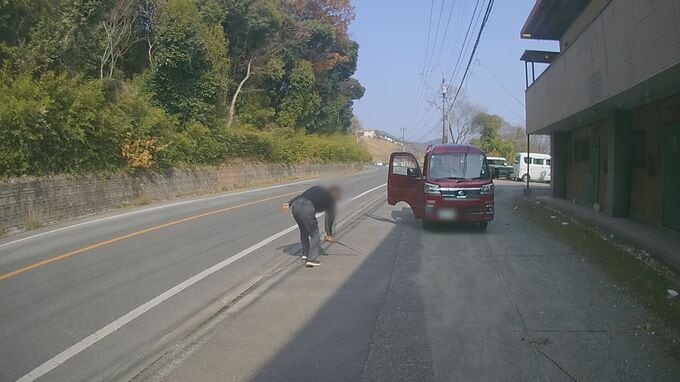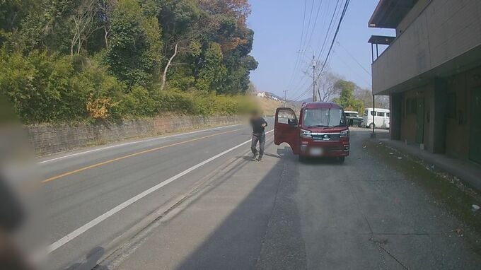 数分後、車を止めるよう合図され、車を降りると、軽トラックの男性運転手が刀のようなものを持って詰め寄ってきたといいます。