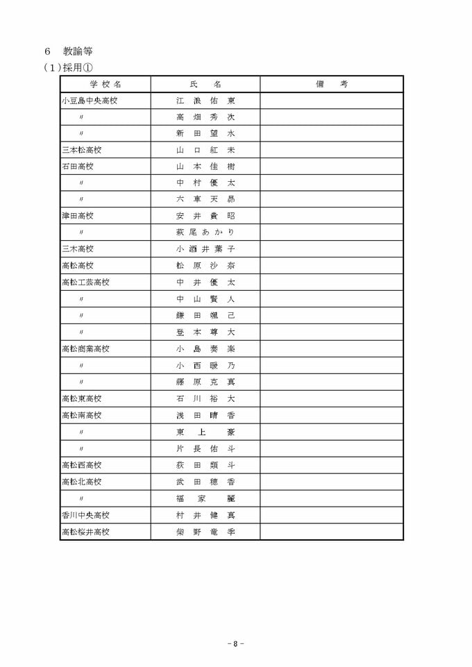 【2026年4月】香川県教職員人事異動「あの先生は、どこへ?」県立学校教員・事務職員【画像一覧掲載】 RSK山陽放送 2026年3月19日(木) 15:11 国内 教諭など 《画像》 【西部小学校】【東部小学校】【西部中学校】【東部中学校】【県立教員・事務職員】