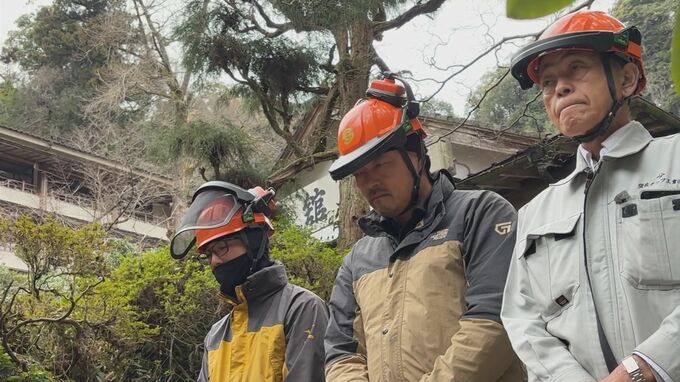 撤去作業は、チェーンソーでスギを切り分けて大型クレーンで吊るし上げ、トラックで運び出す計画で、今月いっぱいかかる見通しです。