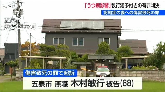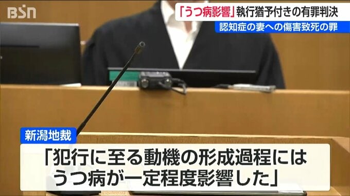 認知症の妻に暴行を加え死亡させたとして新潟県 五泉市の男が傷害致死の罪に問われている裁判員裁判で18日、新潟地裁は執行猶予付きの有罪判決を言い渡しました。