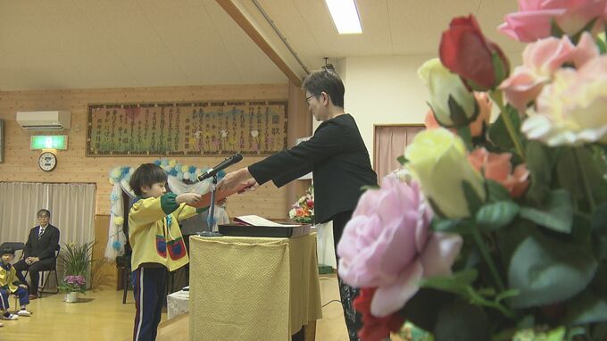 福島県西郷村にある西郷幼稚園では、18日、卒園式が行われました。式には、卒園生41人が出席し、園長から卒業証書が手渡されました。入園時よりもひとまわり大きく成長した子どもたち。答辞では、小学校への意気込みを元気よく話しました。