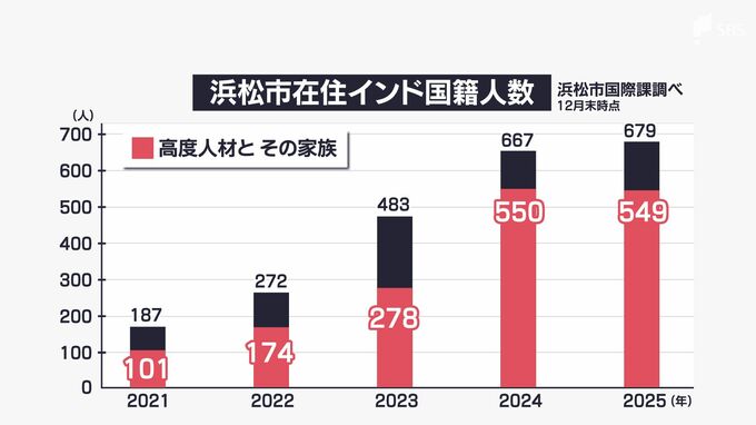 現在、浜松市内に暮らすインド国籍の人は約680人。なかでも「高度人材」とその家族は、全体の8割を占めます。