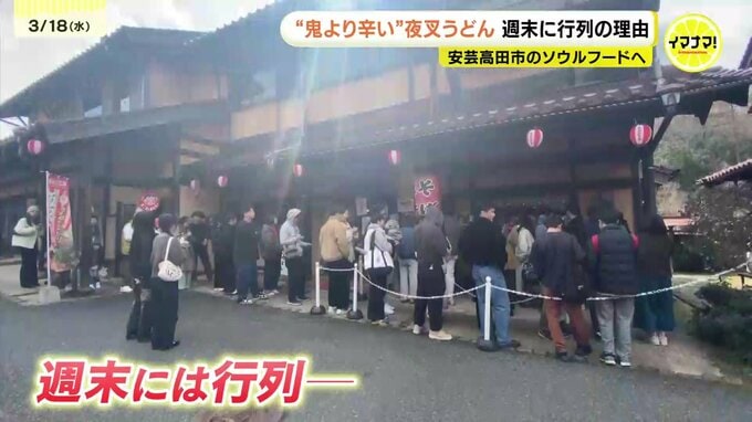 来店客「夜叉うどん食べにきました。自分は1、2回来たことがあって、ちょっとクセになるんで、辛さが」