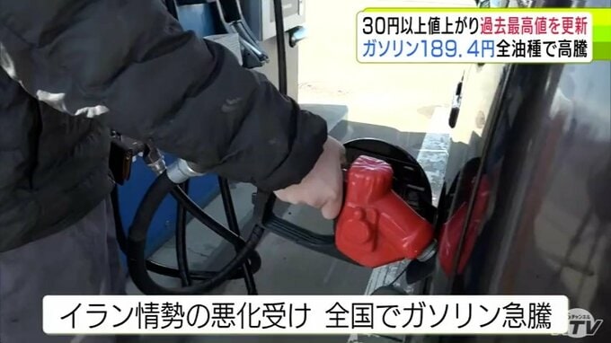 すべての油種で過去最高値を更新 青森県内のレギュラーガソリン価格は189.4円に 前週から30円以上値上がりで190円台に迫る ハイオク200.5円 軽油178.4円 灯油154.8円…一体いつまで 青森テレビ 2026年3月18日(水) 21:32 国内 【写真を見る】 ※「NEWS DIG」のアプリやサイト以外でご覧の方は、関連リンクから画像をご確認いただけます。