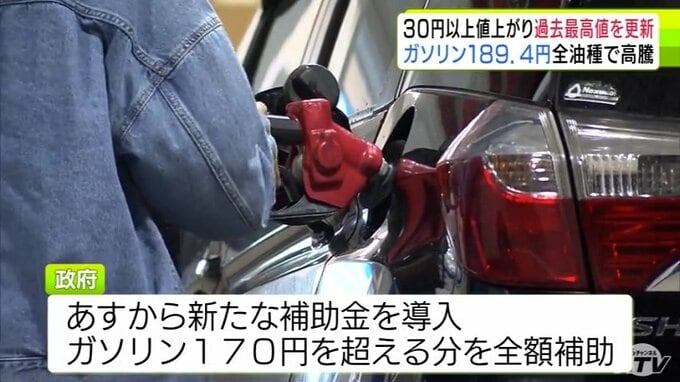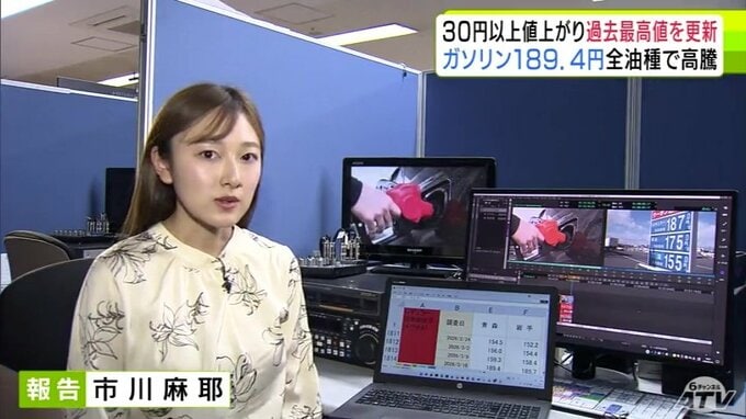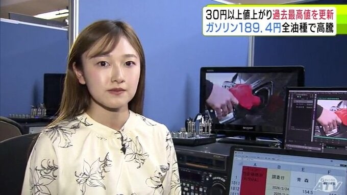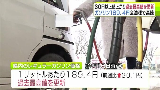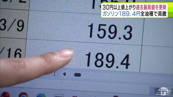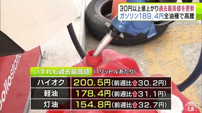 すべての油種で過去最高値を更新 青森県内のレギュラーガソリン価格は189.4円に 前週から30円以上値上がりで190円台に迫る ハイオク200.5円 軽油178.4円 灯油154.8円…一体いつまで 3時間前