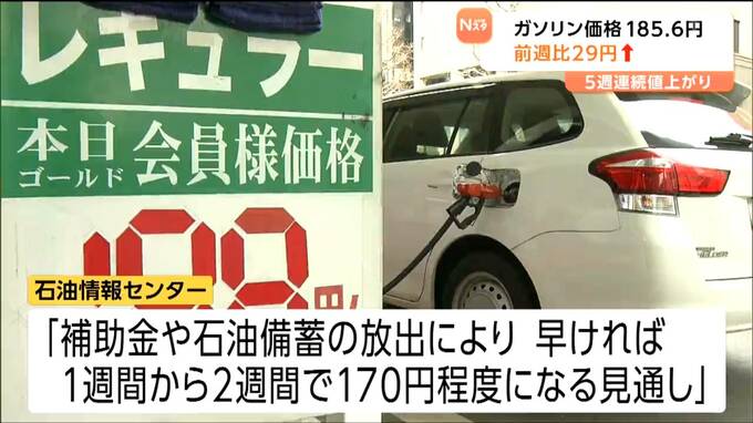 石油情報センターは「補助金や石油備蓄の放出により、早ければ1週間から2週間程度で170円程度になる見通し」と分析しています。