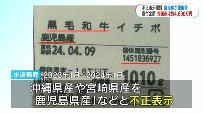 鹿児島県指宿市の水迫畜産が、牛肉の産地などを不正に表示していた問題です。ふるさと納税の返礼品としていた6つの自治体のうち、指宿市では寄付金がおよそ4600万円に上ることがわかりました。