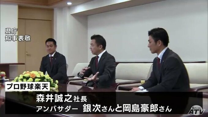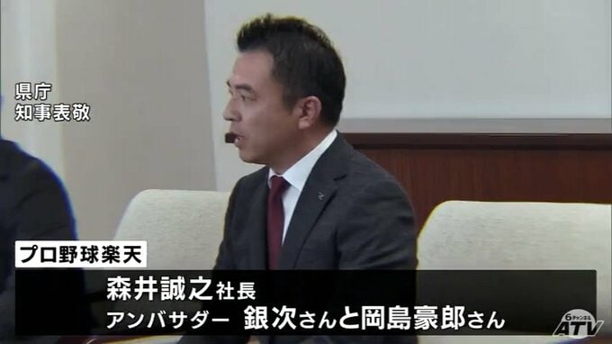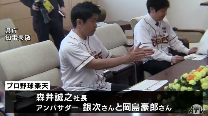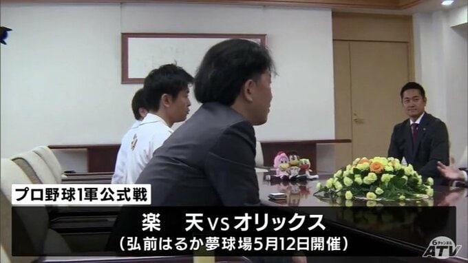 プロ野球楽天の森井社長や元選手でアンバサダーの銀次さん・岡島豪郎さんが青森県庁に! 5月に弘前市で開催の1軍公式戦の必勝誓う 青森テレビ 2026年3月19日(木) 15:30 国内 【写真を見る】18日の知事表敬の様子 ※「NEWS DIG」のアプリやサイト以外でご覧の方は、関連リンクから画像をご確認いただけます。
