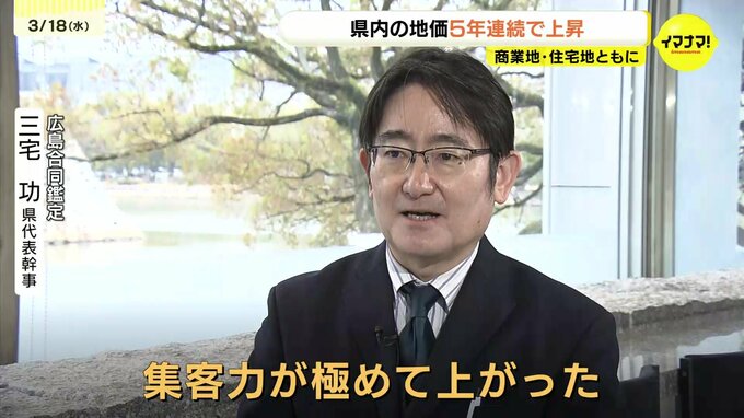 土地の価格、「地価公示」が発表されました。広島県内では、住宅地、商業地ともに5年連続で上昇するなど、中心部の再開発が大きく影響しているようです。