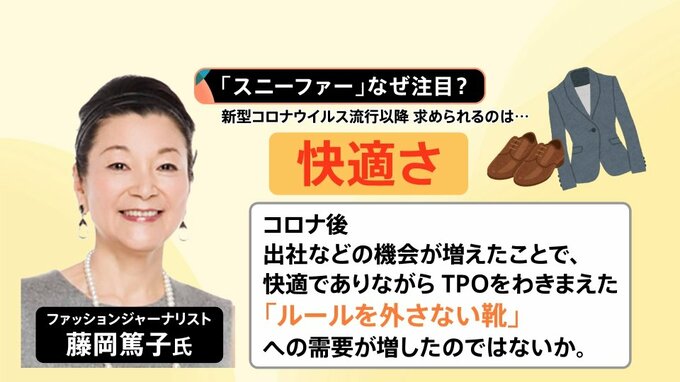 コロナ後、出社などの機会が増えたことで、快適でありながらTPOをわきまえた「ルールを外さない靴」への需要が増したのではないかということです。