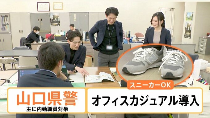 山口県警では、2025年、主に内勤職員を対象に、オフィスカジュアルが導入され、スニーカーがOKになりました。
